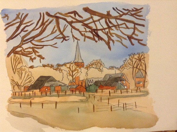 Inspiration from a photograph of a typical "brink" in the NetherlandsPainted in watercolour in New Zealand, May 2014.