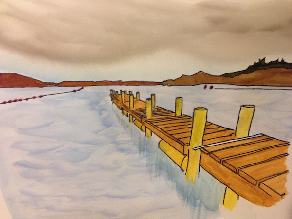 Jetty with lakeview in New ZealandPainted in watercolour in New Zealand, May 2014.