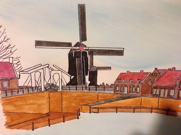 Inspiration from a photograph taken in Vlissingen, The NetherlandsPainted in watercolour in New Zealand, May 2014.